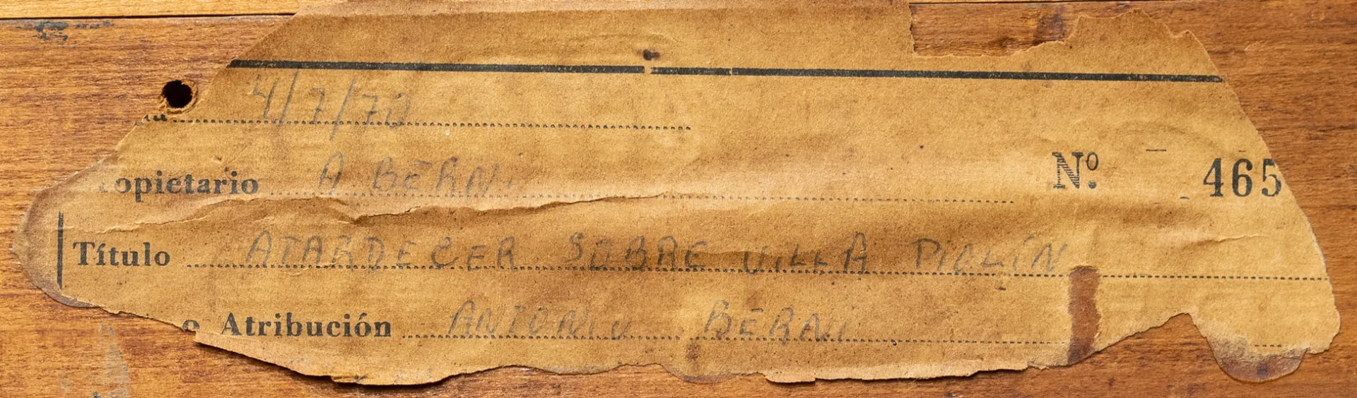 Collage sobre madera. Firmado y fechado A. Berni/60, abajo a la derecha. Mide: 90 x 120 cm. Ref.: Al dorso, titulado y fechado 1959 y medidas. Etiqueta con datos de la obra, fechada 4/7/70. Etiqueta de Gallery of Modern Art (deteriorada). Expuesta en la muestra retrospectiva “Berni 1922-196”, Centro de Artes Visuales del Instituto Torcuato Di Tella, junio-julio 1968. Mencionada en dicho catálogo, N° 53. Expuesta en la muestra retrospectiva “Antonio Berni 1922-196”, Museo Provincial Emilio A. Caraffa, Córdoba, 1965. Mencionada en dicho catálogo, N° 24. Expuesta en la muestra retrospectiva “Berni. Obras 1927-196”, Museo Provincial de Bellas Artes Rosa Galisteo de Rodríguez, Santa Fe, agosto de 1965. Mencionada en dicho catálogo, N° 23. Expuesta en la muestra retrospectiva “The art of Antonio Berni: paintings, prints, constructions”, Hartford Gallery of Modern Art, 1966. Expuesta en la muestra retrospectiva “The art of Antonio Berni: paintings, prints, constructions”, The New Jersey State Museum, 1 al 30 de octubre de 1966. Mencionada en dicho catálogo bajo el N° 28 (con medidas expresadas en pulgadas). Expuesta en la muestra “Pintura argentina-Promoción Internacional” realizada por Fundación Lorenzutti en el Museo Nacional de Bellas Artes, julio de 1970. Mencionada en dicho catálogo, pág. 27.